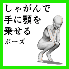 しゃがんで手に顎を乗せる Clip Studio Assets